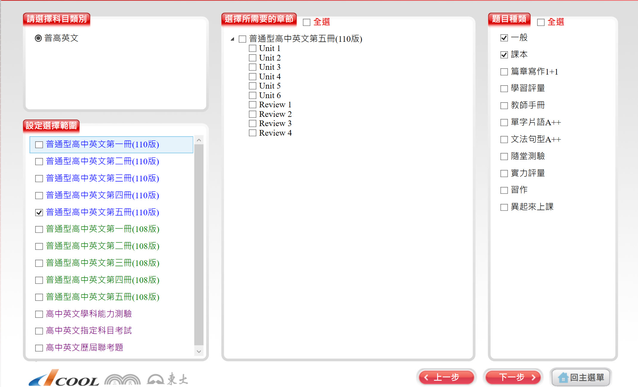 112學年上學期 高中命題光碟 三民版 英文科(一、二、三、四、五)(108課綱) 題庫光碟